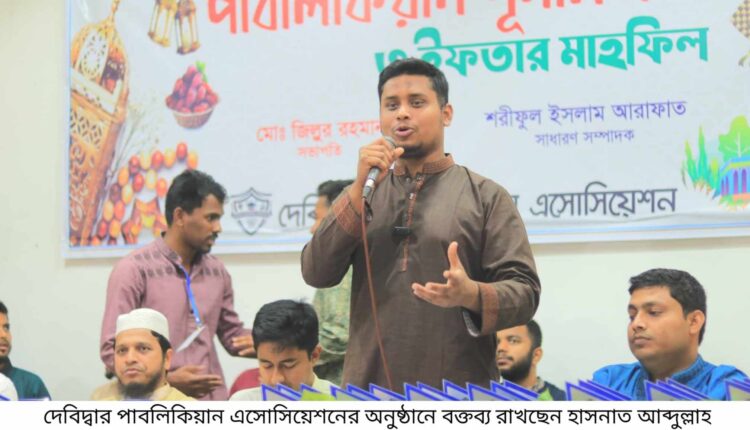 জাতীয় নাগরিক পার্টি এনসিপির দক্ষিণাঞ্চলের মুখ্য সংগঠক হাসনাত আব্দুল্লাহ বলেন, আমাদের দেশের লিডারশিপ হচ্ছে ভন্ডামী পূর্ণ, উনারা আমাদের যা আমল করতে বলে, সেই আমলের ধারে কাছে দিয়েও তারা যান না। অর্থাৎ, যারা সার্ভিস প্রোডিউস করে তারা কখনো সার্ভিসের কনজিওমার না। তাছাড়া সমাজে কিছু আছে সুদখোর ঘুষখোর। সমাজের কিছু কিছু মানুষ আছে যাদের কাজই হচ্ছে সালিশ-দরবার করা। কিছু মানুষের কাজ হচ্ছে থানার চারপাশে ঘোরাফেরা করা। কিছু কিছু মানুষ তৈরি হয়েছে যারা কখনো স্কুলের ধারে কাছেও যায় না কিন্তু তাদের টার্গেট হচ্ছে স্কুল কমিটির সভাপতি হওয়া। আসলে তাদের দোষ দিয়ে লাভ নেই, দোষটা কিন্তু আমাদের, আমরা সচেতন ভাবে তাদের প্রতিহত করি না। শুক্রবার বিকেলে উপজেলা পরিষদ হল রুমে দেবিদ্বার পাবলিকিয়ান এসোসিয়েশন আয়োজিত পুনর্মিলনী ও ইফতার অনুষ্ঠানে তিনি এসব কথা বলেন।