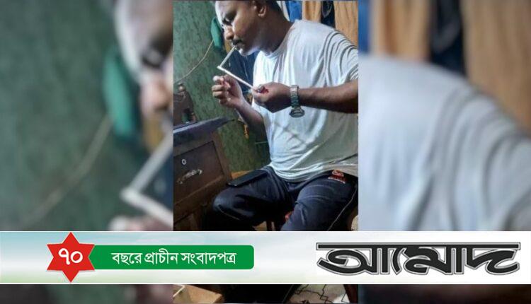 ছবিতে দেখা যায়, চেয়ারে বসে লাল রঙের লাইটারে, সিগারেট ফয়েল পেপার দিয়ে ইয়াবা সেবন করছেন তিনি।