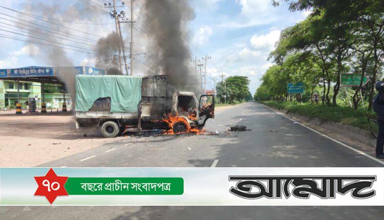 পুলিশ ও বিজিবি‘র তিন গাড়িতে আগুন