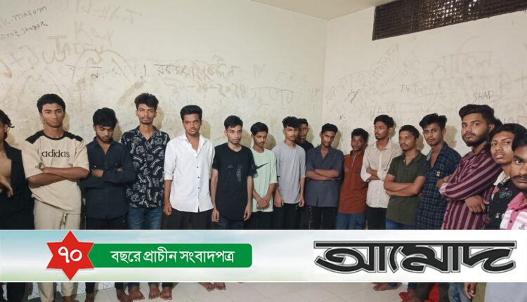 আটক করা হয়, রাকিব হাসান শুভ (১৮), মো. মিলন (১৭), মো. ফাহিম হোসেন (১৭), নিবির ইন্তেসার নিশান (১৯), শাহাদাত হোসেন শান্ত (১৯), মো. নিহাল আহমেদ (২৬), সোহাগ (১৭), সাইমন (১৭), সাব্বির (১৭), শহিদ (১৯), হৃদয় (১৯), মো. ইফতেখার হোসেন তাহসিন (১৭), মো. শাহাদাত হোসেন (২৬), মো. মুজাহিদুল ইসলাম (২২), রাফিউল আহম্মদ রাফি (২০), সাইফুল ইসলাম (১৯), ইমরান হোসেন রতন (১৯) ও শাহ পরান (১৮)।