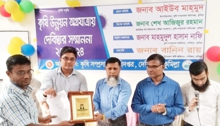 ভার্মি-কম্পোস্ট(কেঁচো সার) উদ্যোক্তা হিসেবে তুলাগাঁও ব্লকের কৃষক মোঃ কামরুল হোসাইন, নবিয়াবাদ ব্লকের কৃষক মোঃ সালাউদ্দিন মাসুদ, জাফরগঞ্জ ব্লকের কৃষক কাওছার হামিদ, বীজ উদ্যোক্তা ও নতুন জাত সম্প্রসারণে অবদানের জন্য কুরছাপ গ্রামের কৃষক রফিক আহমেদ,আঙুরসহ অন্যান্য ফল চাষের জন্য ছেপাড়া গ্রামের কৃষক মোঃ আবুল ফয়েজ মুন্সী, ওয়াহেদপুর গ্রামের কৃষক আতিকুর রহমান এবং দেবিদ্বার পৌরসভার কৃষক মোঃ আনোয়ার রহমানকে,কৃষি যান্ত্রিকীকরণে উদ্যোক্তা হিসাবে ভানী ইউনিয়নের মোঃ রাসেল ভুঞা ও ইউছুফপুর ইউনিয়নের কৃষক মোঃ এমদাদুল হক, সবজি চাষে জৈব বালাই ব্যবস্থাপনার জন্য পৌরসভা ভোষনার কৃষক ওসমান সরকারকে সম্মাননা দেয়া হয়েছে।
