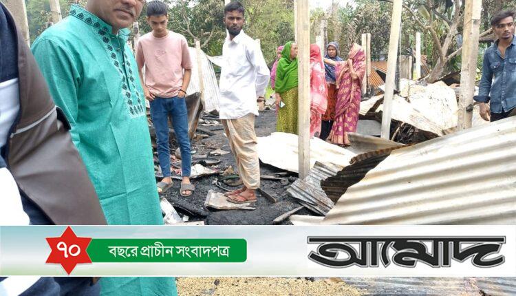 সরজমিন দেখা যায়, পাঁচটি ঘরের শুধু সিমেন্টের খুঁটি গুলো দাঁড়িয়ে আছে, ছড়িয়ে ছিটিয়ে আছে আগুনে পোড়া ঘরের আসবাবপত্র। হাড়িপাতিল, লেপ কম্বল, চাল ডাল, হাঁস মোরগসহ পোড়া সব কিছুর অবশিষ্টাংশ। আগুনে পুড়েছে আমির হোসেন, আলী আশ্রাফ, কাওসার, মৃত ইউসুফ ও হাসানের ঘর। রান্না ঘর, থাকার ঘর ও হাঁস মুরগির ঘরসহ রক্ষা পায়নি কিছুই। সব হারিয়ে বাকরুদ্ধ এই পাঁচ পরিবারের সদস্যরা।