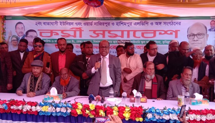 শুক্রবার (৩ জানুয়ারি) বিকেলে কুমিল্লার চান্দিনা উপজেলার বাতাঘাসী ইউনিয়নের হাসিমপুর সরকারি প্রাথমিক বিদ্যালয় মাঠে এলডিপি’র কর্মী সমাবেশে প্রধান অতিথির বক্তৃতায় তিনি এ কথা বলেন।