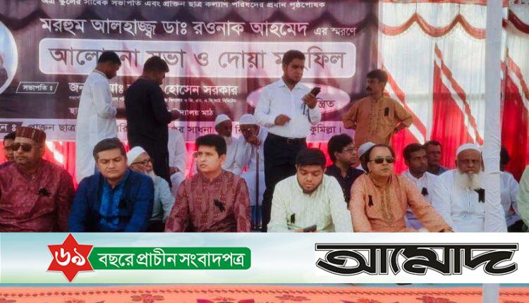 সংগঠনের সাধারণ সম্পাদক অ্যাডভোকেট আলমগীর কবির ও সাংগঠনিক সম্পাদক বাদশাহ ফরহাদ যৌথভাবে অনুষ্ঠান সঞ্চালনা করেছেন। অতিথি হিসাবে ছিলেন, মরহুম ডা. রওনাক আহমেদের জেষ্ঠ পুত্র বিদ্যালয়ের ম্যানেজিং কমিটির নবনির্বাচিত সভাপতি ডা.আহমেদ ইফরাত বিন রওনাক এবং কনিষ্ঠ পুত্র ব্যারিস্টার আহমেদ ফারজাদ বিন রওনাক।