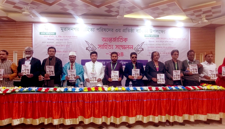 জাতীয় কবি কাজী নজরুলের স্মৃতি বিজড়িত কুমিল্লার মুরাদনগরে এই প্রথমবারের মতো বর্ণাঢ্য আয়োজনে অনুষ্ঠিত হয়েছে আন্তর্জাতিক সাহিত্য সম্মেলন ২০২৪। মুরাদনগর উপজেলা পরিষদের কবি নজরুল মিলনায়তনে মুরাদনগর সাহিত্য পরিষদ শুক্রবার দিনব্যাপী এ সম্মেলনের আয়োজন করে। অনুষ্ঠানটি দুটি অধিবেশনে মাধ্যমে অনুষ্ঠিত হয়।
