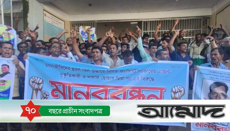 মানববন্ধনে অংশ নিয়ে স্থানীয় মৎস্যজীবী সমিতির সভাপতি বিশ্বজিৎ বিশ্বাস বলেন, জেলা প্রশাসন আমাদের লিজের ৮২৮ একর জলাশয় বুঝিয়ে দিয়েছেন। কিন্তু স্থানীয় ছোয়াব মিয়া ও তার লোকজন বিলে আমাদের মাছ ধরতে দেয় না। বিলে থাকা আমাদের ঘর ও মাছ ধরার জাল পুড়িয়ে দিয়েছে। আমরা পরিবার নিয়ে আতঙ্কে আছি।’ সমিতির সাধারণ সম্পাদক পরিতোষ চন্দ্র দাসের অভিযোগ, ‘এই বিলে মাছ ধরতে না পারি তাহলে আমাদের কয়েক হাজার পরিবারকে না খেয়ে থাকতে হবে। আমাদের বাপ-দাদার পেশা মাছ ধরা। সেই পেশা যদি না থাকে তাহলে এদেশে কেমনে থাকুম?’ এদিকে অভিযুক্ত ছোয়াব মিয়া জানান, ‘আমাদের ব্যক্তি মালিকানা জায়গা দখল করে মাছ শিকার করছে তারা। বাঁধা দিলে উল্টো আমাদের ফাঁসানোর হুমকি দেয়। তারা নিজেরাই নিজেদের ঘর ও কিছু পুরনো জাল পুড়িয়ে আমাদের উপর দায় চাপাতে এই নাটক সাজিয়েছে। পুলিশ ও উপজেলা প্রশাসন সুষ্ঠু তদন্ত করলে প্রকৃত সত্য বের হয়ে আসবে।’