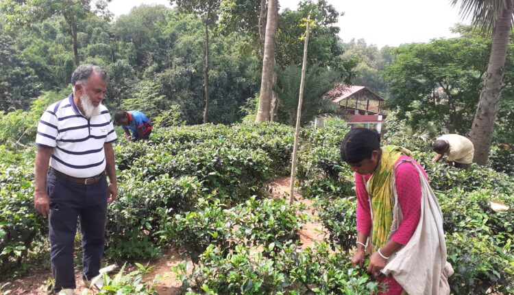 এদিকে স্কুলের পাশে পাহাড়ের মাথায় জৈব সার দিয়ে বিষমুক্তভাবে উৎপাদন করা হচ্ছে চা। এই বাগানের চা পাতা রপ্তানির পরিকল্পনার কথা জানালেন উদ্যোক্তা তারিকুল ইসলাম মজুমদার। রপ্তানি হতে পারে ইংল্যান্ড ও জাপান। পাশাপাশি দুইটি মাঝারি উচ্চতার পাহাড়। পাহাড়ের উপরে ও ঢালুতে চা গাছের সারি। শীতেও স্নিগ্ধতা ছড়াচ্ছে সবুজ চা গাছ। পাহাড়ের উপরে বসানো হয়েছে পানির ট্যাংকি। সেখান থেকে পাইপ দিয়ে পানি বিভিন্ন স্থানে সরবরাহ করা হয়। চা বাগানে শেড ট্রি হিসেবে কড়ই ও সজনে গাছ লাগানো হয়েছে। কয়েকজন নারী পুরুষ চা বাগান পরিষ্কার করছেন।