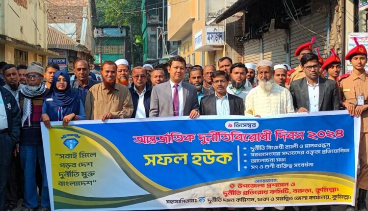 “সবাই মিলে গড়বো দেশ দুর্নীতি মুক্ত বাংলাদেশ” এই প্রতিপাদ্যকে সামনে রেখে বরুড়ায় আন্তর্জাতিক দুর্নীতি বিরোধী দিবস উদযাপন উপলক্ষে র্যালি, আলোচনা ও বিতর্ক প্রতিযোগিতা অনুষ্ঠিত হয়েছে।
