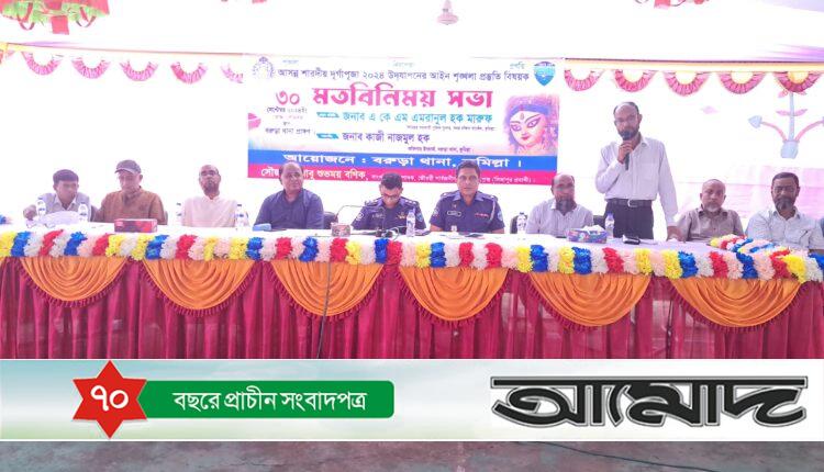 কুমিল্লার বরুড়া থানাধীন আসন্ন শারদীয় দুর্গাপূজা উপলক্ষে আইন শৃঙ্খলার প্রস্তুতি মূলক মতবিনিময় সভা অনুষ্ঠিত হয়েছে।