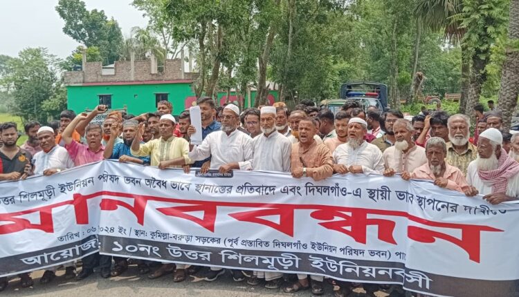 মধ্যবর্তী স্থানে ইউনিয়ন পরিষদ(ইউপি) কার্যালয় স্থাপনের দাবি জানিয়েছেন ১৮হাজার মানুষ। কুমিল্লার বরুড়া উপজেলার উত্তর শিলমুড়ি ইউনিয়নের বাসিন্দারা মানববন্ধনে এই দাবি জানান। বৃহস্পতিবার লালমাই-বরুড়া সড়কের বরুড়া উপজেলার উত্তর শিলমুড়ি ইউনিয়নের দীঘলগাঁও এলাকায় এই মানববন্ধনের আয়োজন করা হয়।