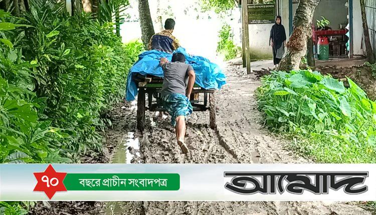 এক হাতে জুতা। আরেক হাতে বোঝা। পিচ্ছিল সড়কে পড়ে যাওয়ার আশংকা। তাই সঙ্গে এনেছেন ১২ বছরের নাতিকে। মাঝপথে দেখা হয় প্রতিবেশী রাহেলার সঙ্গে। রাস্তার এমন দশা কবে থেকে প্রশ্ন করতেই শুরু হয় রাহেলার কান্না। তার প্রশ্ন ‘ভাঙা সড়কে আর কয় কাল?’