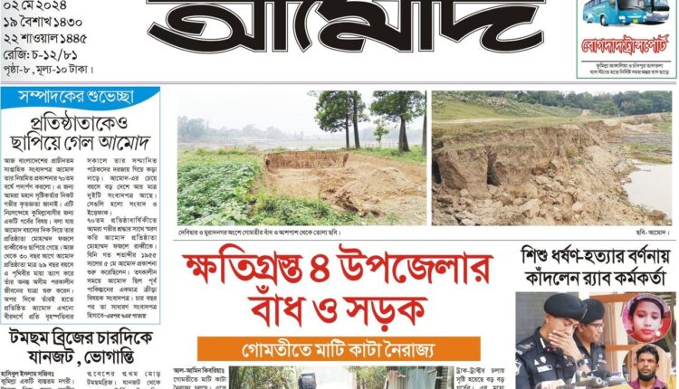 আজ বাংলাদেশের প্রাচীনতম সাপ্তাহিক সংবাদপত্র আমোদ তার নিয়মিত প্রকাশনার ৭০তম বর্ষে পদার্পণ করলো। এ জন্য আমরা মহান সৃষ্টিকর্তার নিকট গভীর কৃতজ্ঞতা জানাই। এটি নিঃসন্দেহে কুমিল্লাবাসীর জন্য একটি গর্বের বিষয়। বলা যায় আমোদ বয়সের দিক দিয়ে তার প্রতিষ্ঠাতা মোহাম্মদ ফজলে রাব্বীকেও ছাপিয়ে গেছে। আজ থেকে ৩০ বছর আগে আমোদ প্রতিষ্ঠাতা মাত্র ৬৯ বছর বয়সে এ পৃথিবীর মায়া ত্যাগ করে তাঁর অনন্ত অসীম পরকালীন জীবনের যাত্রা শুরু করেন। অপর দিকে তাঁরই হাতে প্রতিষ্ঠিত আমোদ এখনো বীরদর্পে প্রতি বৃহস্পতিবার সকালে তার সম্মানিত পাঠকদের দরজায় গিয়ে কড়া নাড়ে।