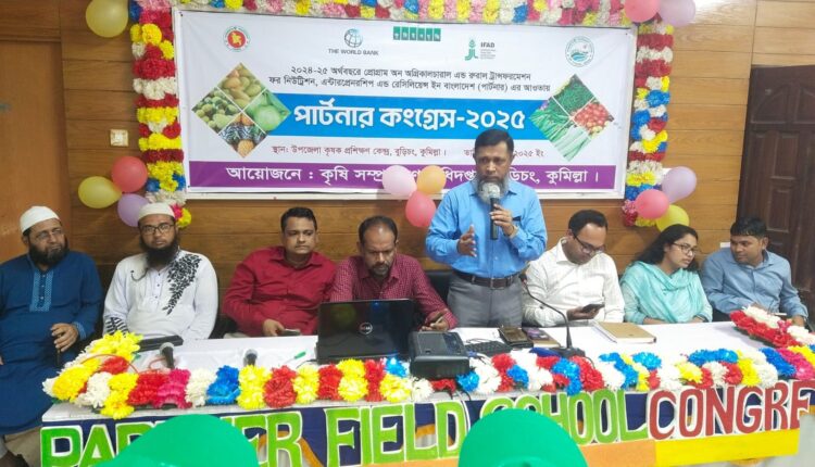 কুমিল্লার বুড়িচংয়ে আধুনিক কৃষি ব্যবস্থাপনা, বিষমুক্ত খাদ্য উৎপাদন ও জলবায়ু সহনশীল কৃষি উন্নয়নের লক্ষ্যে ‘পার্টনার ফিল্ড স্কুল কংগ্রেস’ অনুষ্ঠিত হয়েছে। বুধবার ( ২৫ জুন ) উপজেলা কৃষি সম্প্রসারণ অধিদপ্তরের আয়োজনে কৃষি অফিসের কনফারেন্স কক্ষে কৃষক কিষানিদের এই কংগ্রেসের আয়োজন করা হয়।