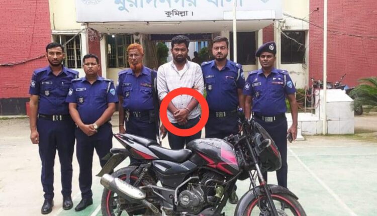 উপস্থিত লোকজন তাকে আটক করে পুলিশে খবর দিলে মুরাদনগর থানার ওসি তাকে আটক করে থানায় নিয়ে যান। তার বিরুদ্ধে মুরাদনগর থানায় চুরি, ছিনতাই, ডাকাতি,ধর্ষণসহ ১১ টি মামলা রয়েছে।