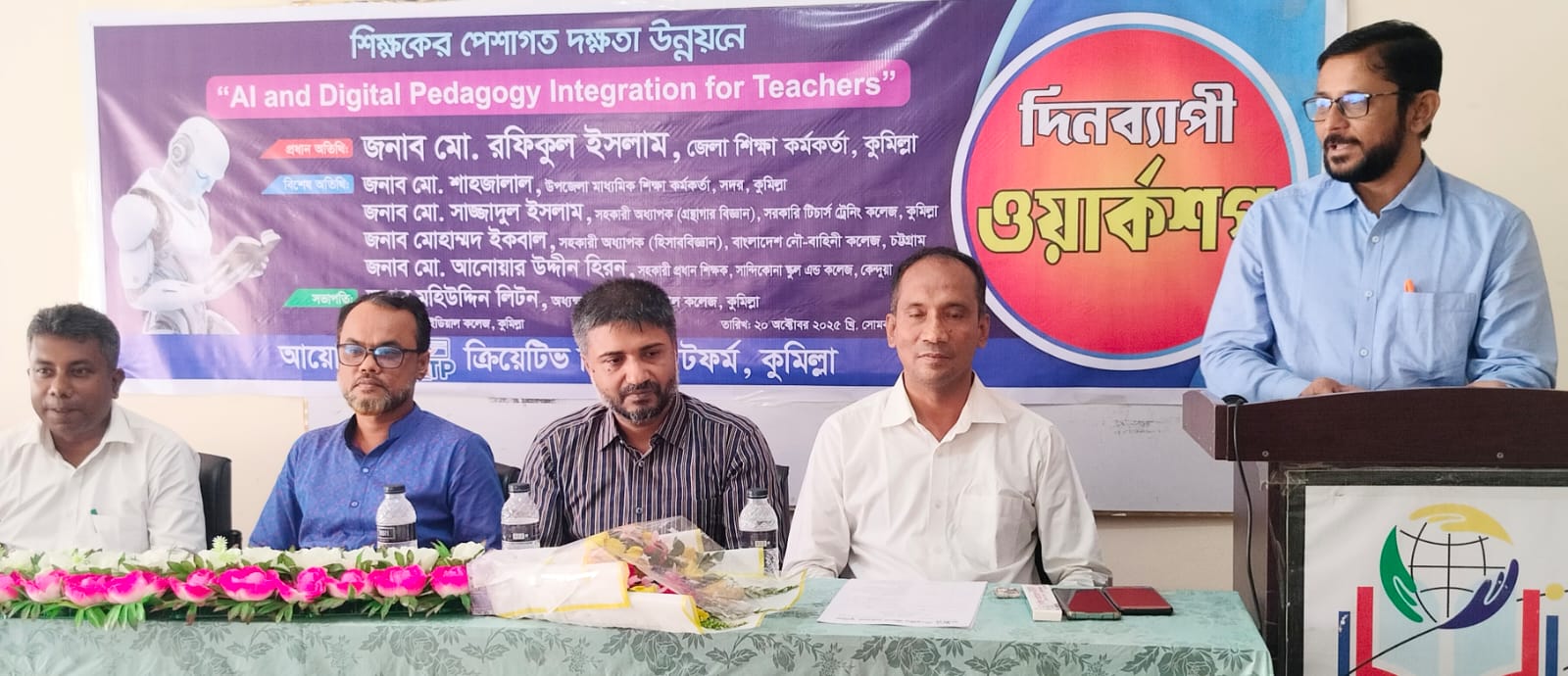 কুমিল্লায় শিক্ষকদের পেশাগত দক্ষতা উন্নয়নে শিক্ষকদের জন্য এআই এবং ডিজিটাল শিক্ষাদান শীর্ষক কর্মশালা ও ক্রিয়েটিভ টিচার্স প্লাটফর্ম সংগঠনের আত্মপ্রকাশ অনুষ্ঠান অনুষ্ঠিত হয়েছে। ২০ অক্টোবর কুমিল্লা আইডিয়াল কলেজ মিলনায়তনে এই অনুষ্ঠানের আয়োজন করা হয়।