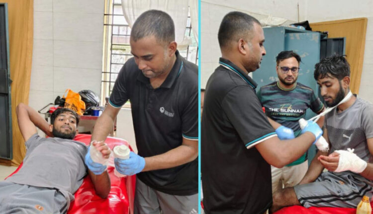 ঝাউতলা থেকে আসা পেশাদার কসাই জাহঙ্গীর আলম বলেন, হাড্ডি কোপাতে গিয়ে তার পায়ে চাপাতি লেগেছে। সদর হাসপাতালে রাখেনি। মেডিকেল কলেজ হাসপাতালে ভর্তি হয়েছেন।