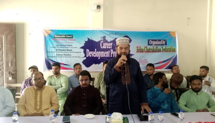 কুমিল্লার চৌদ্দগ্রামে ফেলনা ছাত্রকল্যাণ ফেডারেশন কর্তৃক “ক্যারিয়ার ডেভেলপমেন্ট পোগ্রাম” শীর্ষক আলোচনা সভা অনুষ্ঠিত হয়েছে। বৃহস্পতিবার উপজেলার মুন্সিরহাট ইউনিয়নের ফেলনা উচ্চবিদ্যালয় মিলনায়তনে আয়োজিত অনুষ্ঠানে প্রধান আলোচক ছিলেন জাতীয় বিশ্ববিদ্যালয়ের পরিচালক সাহাব উদ্দিন আহমেদ। বিশেষ আলোচক ছিলেন বাংলাদেশ ব্যাংকার্স এসোসিয়েশনের সভাপতি আগা আজিজুল ইসলাম(আজাদ), সুপ্রিম কোর্টের আইনজীবী আল-মামুন রাসেল, কবি ও সাবাদিক ইমরান মাহফুজ। অতিথিরা শিক্ষার্থীদের ক্যারিয়ার উন্নয়ন পরিকল্পনা, সময়ের চাহিদা, দক্ষতা বৃদ্ধিতে দিকনির্দেশনাসহ বিভিন্ন বিষয়ের ওপর আলোচনা করেন। আধুনিক তথ্যপ্রযুক্তিতে শিক্ষার্থীদের দক্ষতা বৃদ্ধিতে গুরুত্বারোপ করেন।