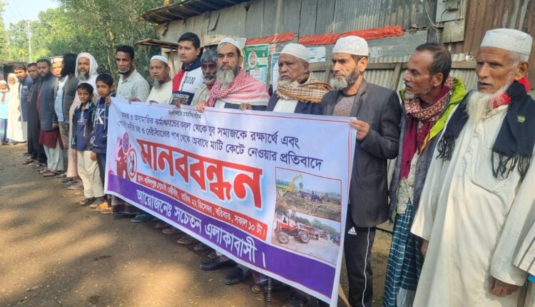 গোমতী নদীর চর ও বাঁধ রক্ষায় এলাকাবাসীর মানববন্ধন