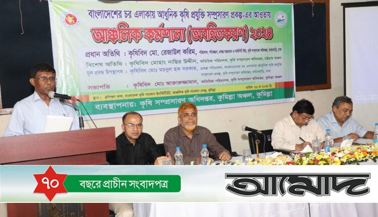 কুমিল্লায় অনুষ্ঠিত হলো বাংলাদেশের চর এলাকায় আধুনিক কৃষি সম্প্রসারণ প্রকল্পের আওতায় আঞ্চলিক কর্মশালা। কৃষি সম্প্রসারণ অধিদপ্তর (ডিএই), কুমিল্লা অঞ্চলের ব্যবস্থাপনায় আঞ্চলিক কৃষি গবেষণা ইনস্টিটিউট কুমিল্লার