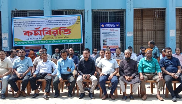 সারা দেশের সাথে চাঁদপুরে ও বিচার বিভাগীয় কর্মচারী অ্যাসোসিয়েশনের কর্মকর্তা ও কর্মচারীরা কর্মবিরতি পালন করেছেন।