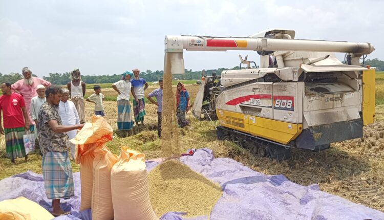 কুমিল্লার দেবিদ্বার উপজেলার ইউসুফপুর গ্রাম। মাঠে মেশিনে গর গর শব্দ তুলে ধান কাটা হচ্ছে। পেছনে সারিবদ্ধভাবে খড় পড়ছে। কাটা শেষে জমিতে বস্তায় ধান ভর্তি করা হচ্ছে। তা গোল হয়ে দাঁড়িয়ে অবাক নয়নে দেখছেন কৃষক কৃষানিরা। এদিকে ব্রি ধান ১০২ জাতের চাষ ও মেশিনে লাগানোতে ফলন বেশি হয়েছে বলে কৃষক কিষানিরা মনে করেন। মাড়াইতে খরচ ও পরিশ্রম কমে যাওয়ায় খুশি তারা। তারা ধানের বস্তা মাথায় নিয়ে খুশি মনে বাড়ি ফিরছেন।