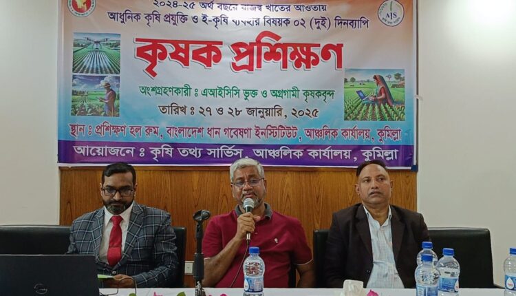 সোমবাব (২৭ জানুয়ারি) বাংলাদেশ ধান গবেষণা ইনস্টিটিউট কুমিল্লা আঞ্চলিক কার্যালয়ের প্রশিক্ষণ হল রুমে ২০২৪-২৫ অর্থ বছরে রাজস্ব খাতের আওতায় আধুনিক কৃষি প্রযুক্তি ও ই-কৃষি ব্যাবহার বিষয়ক দুই দিনব্যাপী কৃষি প্রশিক্ষণ হয়। এই প্রশিক্ষণ চলাকালে এ কথা বলেন কৃষিবিদ মো: মসীহুর রহমান। এই প্রশিক্ষণ কর্মসূচির আয়োজন করেন  কুমিল্লা আঞ্চলিক কৃষি তথ্য সার্ভিস। এতে অংশগ্রহণ করেছেন এআইসিসি ভুক্ত ও অগ্রগামী কৃষকরা।