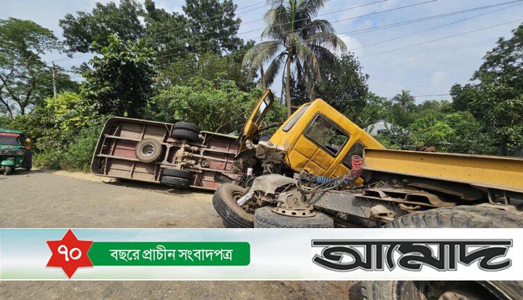 প্রত্যক্ষদর্শীরা জানান, সকাল ৯ টায় সড়কের চরবাকর এলাকায় একটি মালবাহী ট্রাকের চাকা ফেটে সড়কেই থুবড়ে পরে। এ সময় একটি কাভার্ডভ্যানের সাথে ধাক্কা লাগে ট্রাকটির। দুমড়ে মুচড়ে যায় কাভার্ডভ্যানটির সামনের অংশ। একই সময় কাভার্ডভ্যানটির পেছনে ধাক্কা লাগে একটি যাত্রীবাহী বাসেরও। ধাক্কা খেয়ে বাসটি উল্টে পড়ে সড়কের পাশে। আহত হন ২০জন। স্থানীয়রা আহতদের উদ্ধার করে উপজেলা স্বাস্থ্য কমপ্লেক্সে নিয়ে যান।