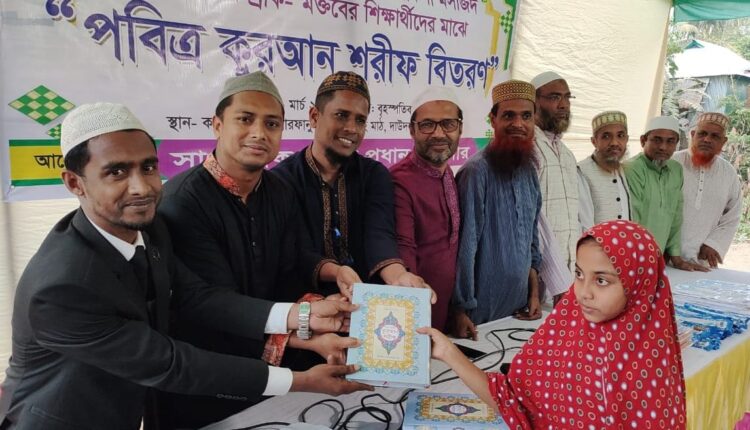 দাউদকান্দিতে শিক্ষার্থীদের মাঝে পবিত্র কুরআন বিতরণ