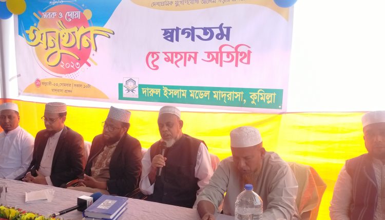 দারুল ইসলাম মডেল মাদরাসায় সবক ও দোয়া অনুষ্ঠান অনুষ্ঠিত হয়েছে। সোমবার (১৬ জানুয়ারি) কুমিল্লা নগরীর হালুয়াপাড়া মসজিদ সংলগ্ন মাদরাসা মিলনায়তনে এ আয়োজন করা হয়। সবক ও দোয়া অনুষ্ঠানের প্রধান অতিথি ছিলেন কুমিল্লা ইসলামিয়া আলিয়া মাদরাসার অধ্যক্ষ মাওলানা আব্দুল মতিন। বিশেষ অতিথি ছিলেন পিপুলিয়া ইসলামিয়া কামিল মাদরাসার অধ্যক্ষ মুফতি নজির আহমদ, বিজরা নাজিরিয়া ফাজিল মাদরাসার অধ্যক্ষ মাওলানা আমিনুল ইসলাম,পরতি ইসলামিয়া ফাজিল মাদরাসার আরবী প্রভাষক মাওলানা মো. আব্দুন নূর, দারুল ইসলাম মডেল মাদরাসার সেক্রেটারি মু.কামাল হোসেন প্রমুখ। মাদরাসার সহকারী শিক্ষক মাওলানা বেলায়েত হোসেনের পরিচালনায় সভাপতিত্ব করেন মাওলানা মোহাম্মদ মহসীন কবির। অভিভাবকের পক্ষে বক্তব্য রাখেন শাহ মো. মিজানুর রহমান ও মো. জাহাঙ্গীর আলম।