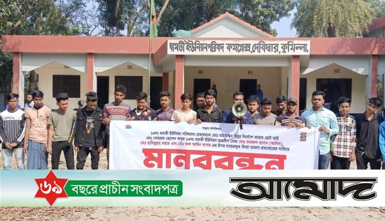 কুমিল্লার দেবিদ্বার উপজেলার ধামতী ইউনিয়নের তিন ছাত্রলীগ নেতার বিরুদ্ধে দায়ের করা মামলা প্রত্যাহারের দাবিতে মানববন্ধন ও বিক্ষোভ মিছিল করেছে ইউনিয়ন ছাত্রলীগ। রোববার ধামতী ইউনিয়ন পরিষদের সামনে ওই মানববন্ধন ও বিক্ষোভ মিছির অনুষ্ঠিত হয়।