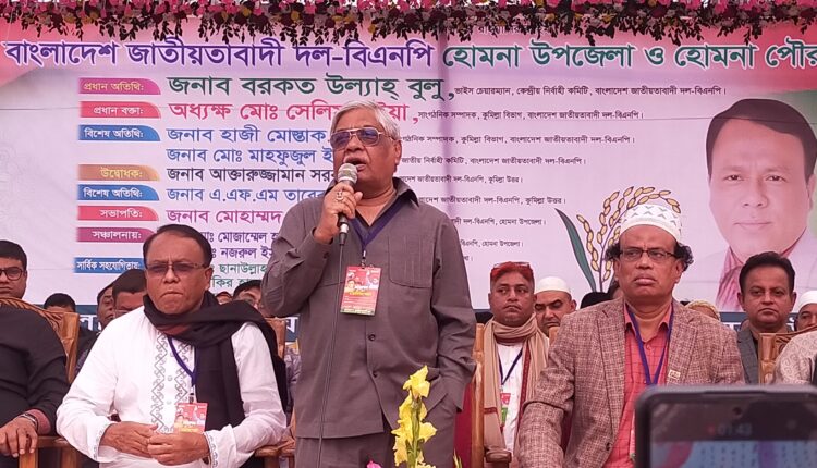 হোমনা উপজেলা ও পৌর বিএনপির দ্বি-বার্ষিক সম্মেলনে প্রধান অতিথির বক্তব্যে বাংলাদেশ জাতীয়তাবাদী দল- বিএনপি কেন্দ্রীয় কমিটির ভাইস চেয়ারম্যান বরকত উল্যাহ বুলু এসব কথা গুলো বলেন।