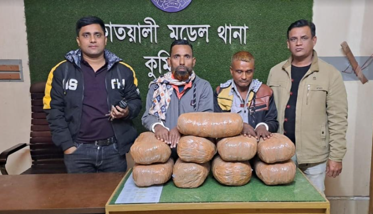 কুমিল্লা নগরীতে গাঁজাসহ দুজনকে আটক করেছে বলে জানিয়েছে পুলিশ। রবিবার (১ জানুয়ারি) রাত ১১টায় নগরীর বাগিচাগাঁও এলাকায় একটি ট্রাক থেকে গাঁজাসহ ওই দুজনকে আটক করা হয়। এসময় ১৮ কেজি গাঁজা উদ্ধার করে পুলিশ। সঙ্গে পরিবহনের কাজে ব্যবহৃত ওই ট্রাকও আটক করে।