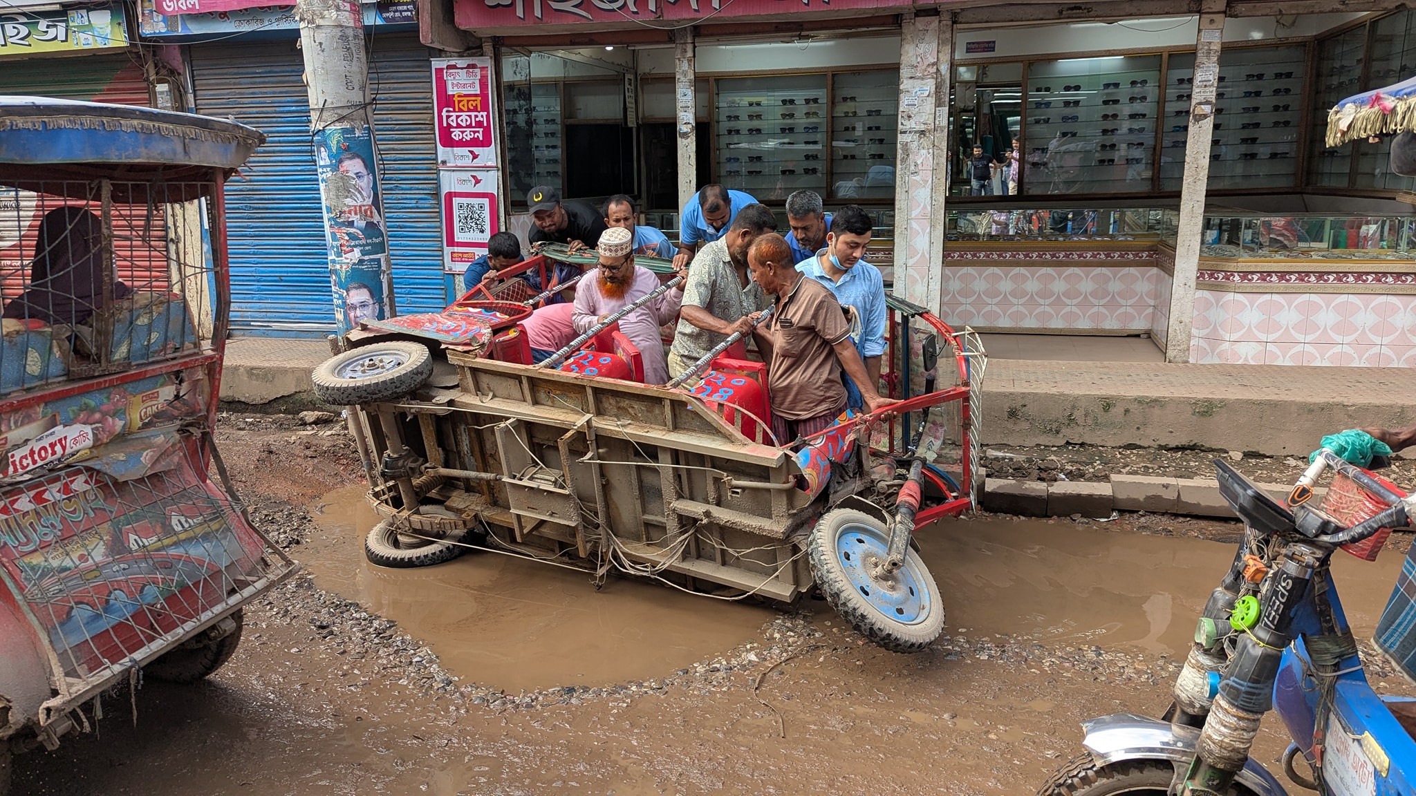 রাজগঞ্জ এলাকার সুজন টিনঘরের ব্যবসায়ী আনোয়ার হোসাইন বলেন, রাজগঞ্জ মোরগ বাজার গেটের উল্টো দিকে আমাদের ব্যবসা প্রতিষ্ঠান। এখানের সড়কের বেহাল দশা দীর্ঘদিনের। সম্প্রতি সিটি করপোরেশন একপাশে ঢালাইয়ের কাজ করেছে। বাকি অংশ গর্ত হয়ে আছে। সেখানে প্রতিনিয়ত অটোরিকশাসহ বিভিন্ন যানবাহন উল্টে পড়ে মানুষজন আহত হচ্ছেন। মঙ্গলবারও চারটি অটোরিকশা উল্ট পড়ে মানুষ আহত হয়েছেন। সড়কের কাজ দ্রæত শেষ হলে মানুষের দুর্ভোগ কমবে।