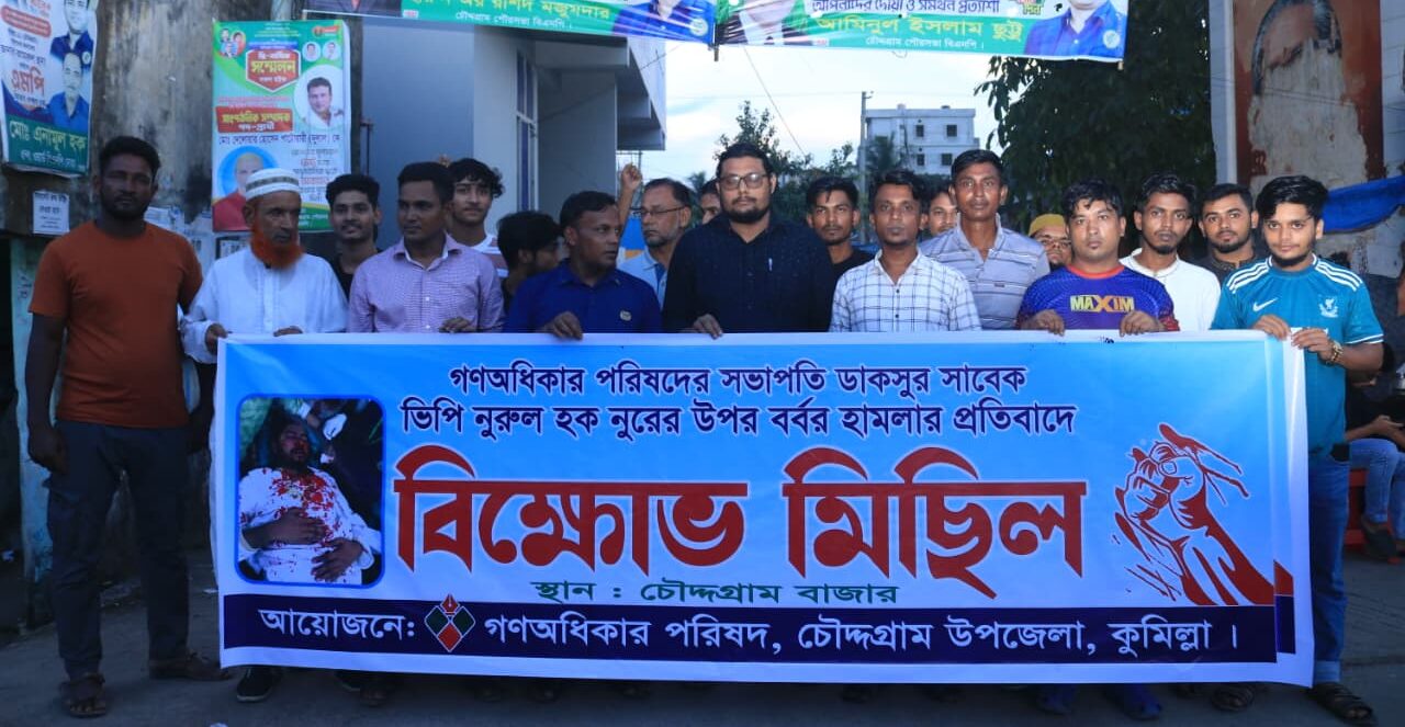 নুরের উপর হামলায় চৌদ্দগ্রামে বিক্ষোভ মিছিল