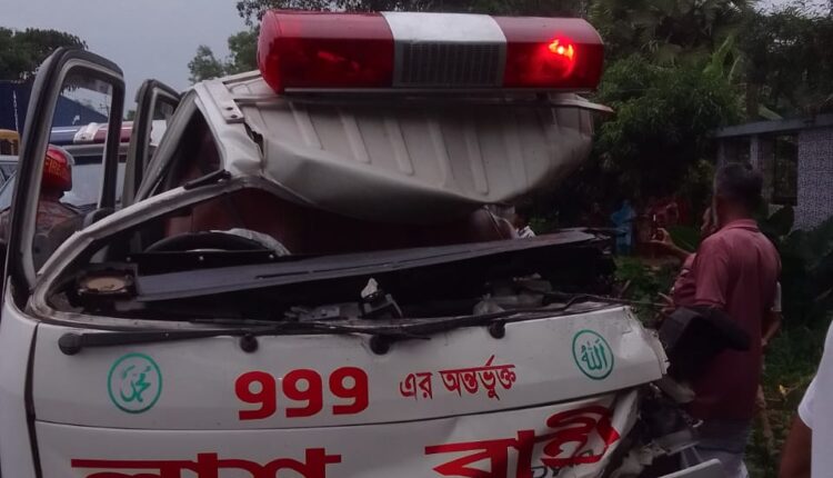 অ্যাম্বুলেন্সটি একটি লরির পিছনে ধাক্কা দেয়