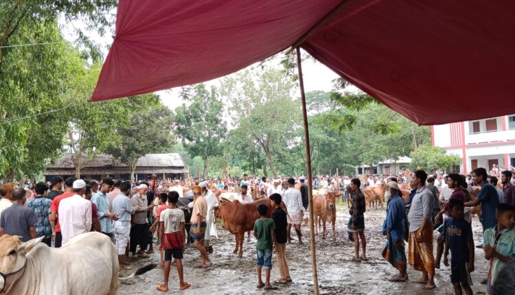 বরুড়ায় শিক্ষা প্রতিষ্ঠানের মাঠে চলছে গরুর হাট