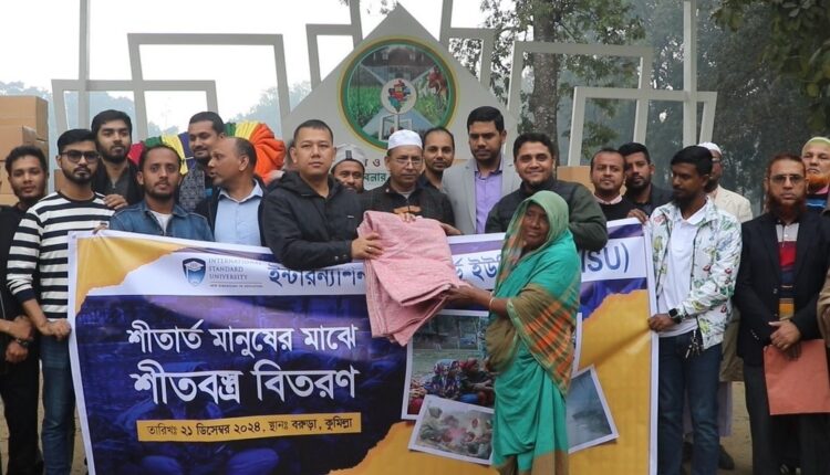 কুমিল্লার বরুড়ায় ইন্টারন্যাশনাল স্ট্যান্ডার্ড ইউনিভার্সিটি(আইএসইউ) ও মাহমুদা রহমান কল্যাণ ট্রাস্টের উদ্যোগে শীতার্তদের মাঝে শীতবস্ত্র ও কম্বল বিতরণ করা হয়েছে। শনিবার উপজেলা পরিষদ ভবনের সামনে প্রধান অতিথি উপজেলা নির্বাহী অফিসার নু এমং মারমা শীতবস্ত্র বিতরণের উদ্বোধন করেন।