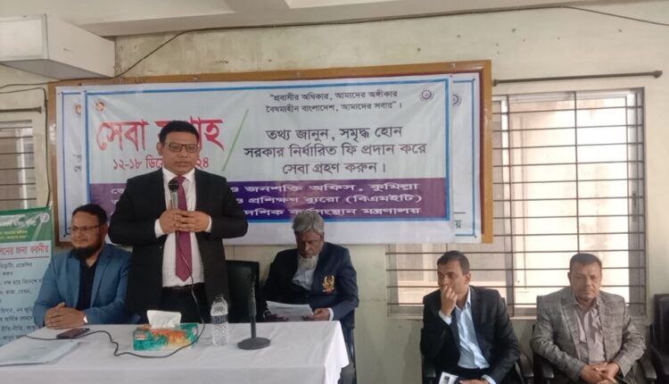প্রবাসীর অধিকার আমাদের করণীয় / বৈষম্যহীন বাংলাদেশ, আমাদের সবার- এ প্রতিপাদ্যকে ধারণ করা সেবা সপ্তাহ উপলক্ষে আয়োজিত প্রশিক্ষণ কর্মশালাও প্রধান অতিথি হিসেবে বক্তব্য রাখেন জেলা প্রশাসক মোঃ আমিরুল কায়ছার।