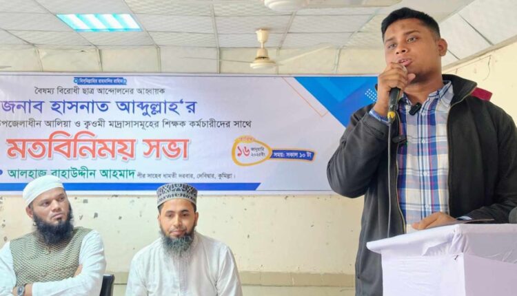বৃহস্পতিবার কুমিল্লার দেবিদ্বার উপজেলার আলিয়া মাদরাসা ও ক্বওমী মাদরাসার আলেম ওলামাদের সাথে একটি মতবিনমিয় সভায় প্রধান অতিথির বক্তব্যে এসব কথা বলেন তিনি।