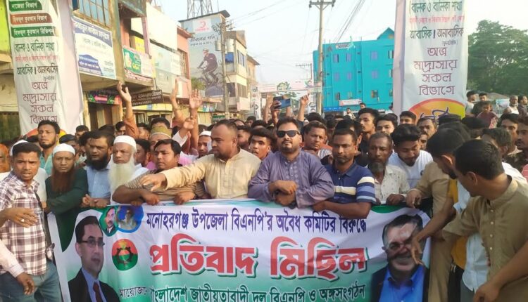 মনোহরগঞ্জে বিএনপির অবৈধ কমিটির বিরুদ্ধে প্রতিবাদ মিছিল
