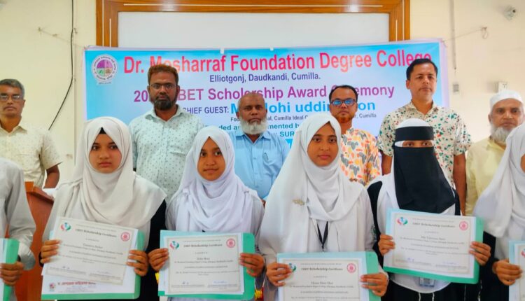 ড. মোশাররফ ফাউন্ডেশন ডিগ্রি কলেজে কেনাডা— বাংলাদেশ শিক্ষা ট্রাস্টের সহযোগিতায় মেধাবী শিক্ষার্থীদের মাঝে শিক্ষাবৃত্তি প্রদান অনুষ্ঠান ও আলোচনা সভা জাতীয় বিশ্ববিদ্যালয়ের সিনেট সদস্য ও ড. মোশাররফ ফাউন্ডেশন ডিগ্রি কলেজের অধ্যক্ষ মো. আবদুর রহমানের সভাপতিত্বে অনুষ্ঠিত হয়।