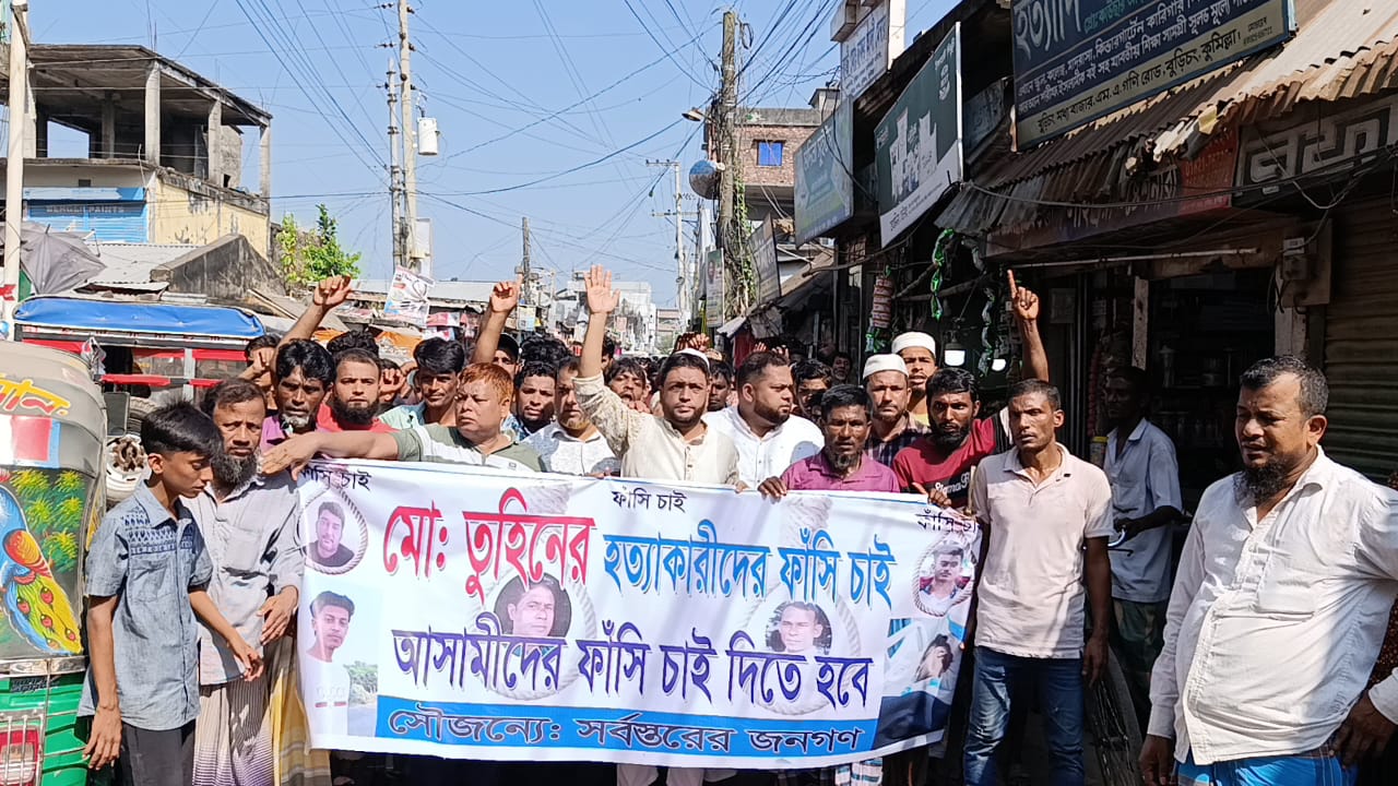 সহযোগিতার অভিযোগে মেয়ের প্রেমিকের বন্ধু কলেজ ছাত্র তুহিনকে পিটিয়ে হত্যা করা হয়েছে বলে এলাকাবাসী অভিযোগ করেছেন। তুহিন কুমিল্লা বুড়িচং এরশাদ ডিগ্রি কলেজের ছাত্র। সে উপজেলার বাহেরচর গ্রামের মোসলেহ উদ্দিনের ছেলে। তুহিন হত্যায় অভিযুক্ত সাইফুল ইসলাম বাবুসহ অন্যান্যদের গ্রেফতার ও শাস্তির দাবিতে বিক্ষোভ মিছিল ও মানববন্ধন করেছে এলাকাবাসী এবং শিক্ষার্থীরা। মঙ্গলবার বুড়িচং উপজেলা সদরে এ বিক্ষোভ ও মানববন্ধন অনুষ্ঠিত হয়। এছাড়া উপজেলা প্রশাসনের কাছে স্মারকলিপি দেয়া হয়।
