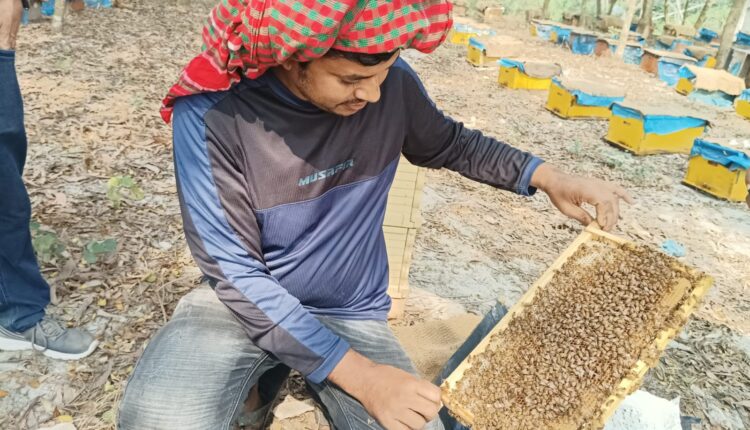 সরেজমিন গিয়ে দেখা যায়,কুমিল্লা,সাতক্ষীরা,টাঙ্গাইল,যশোর,মানিকগঞ্জ ও পাবনা থেকে মৌচাষিরা এসেছেন। কিছু এলাকার কৃষক মৌ বক্স স্থাপনে আপত্তি জানাচ্ছেন। সেখানে উপ-সহকারী কর্মকর্তা মো. রায়হান ও উপজেলা কৃষি সম্প্রসারণ কর্মকর্তা মো. নুর আলম মাঠে গিয়ে তাদের মৌ বক্স স্থাপনের সুফল বর্ণনা করছেন। এদিকে মৌচাষিরা জমে যাওয়া মধু সংগ্রহ করছেন। ট্রে থেকে পড়ছে তাজা টসটসে মধু। বাতাসে ভাসছে মধুর মিষ্টি ঘ্রাণ। স্থানীয়রা তাজা মধু কিনতে ভিড় জমাচ্ছেন।