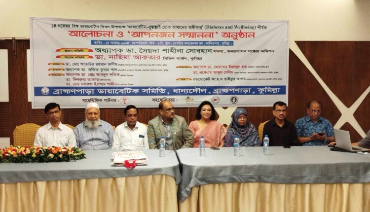 নগরীর একটি কনভেনশন হলে ব্রাহ্মণপাড়া ডায়াবেটিক সমিতির আয়োজনে এ আলোচনা সভা অনুষ্ঠিত হয়।