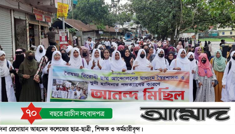 শেখ হাসিনার পদত্যাগে চান্দিনায় ছাত্র-ছাত্রী ও শিক্ষকদের আনন্দ মিছিল