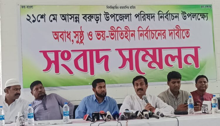 আগামী ২১ মে বরুড়া উপজেলা পরিষদ নির্বাচন। নির্বাচনকে ঘিরে স্বরাষ্ট্রমন্ত্রীর নাম ভাঙ্গিয়ে তার শ্যালক আনারস প্রতীকের প্রার্থী হামিদ লতিফ ভূঁইয়া কামাল প্রভাব বিস্তার করছেন। বিভ্রান্তি ছড়াচ্ছেন বলে অভিযোগ তুলেছেন হেলিকপ্টার প্রতীকের চেয়ারম্যান প্রার্থী এ এন এম মইনুল ইসলাম। তিনি বলেন- স্বরাষ্ট্রমন্ত্রী একজন সজ্জন ব্যক্তি। তিনি কোনো অনৈতিক কার্যক্রমের সাথে জড়িত না থাকলেও আত্মীয়তার পরিচয় দিয়ে এলাকায় তার নামে বিভ্রান্তি ছড়ানো হচ্ছে। এতে করে মন্ত্রী ও সরকারের ভাবমূর্তি ক্ষুন্ন হচ্ছে। শুক্রবার (১৭মে) দুপুরে বরুড়ার একটি কনভেনশন হলে আয়োজিত সংবাদ সম্মেলনে তিনি এসব অভিযোগ করেন। এ সময় উপস্থিত ছিলেন জেলা পরিষদ সদস্য জসীম উদ্দিন, খোসবাস উত্তর ইউপি চেয়ারম্যান নাজমুল হোসেন, শিলমুড়ি উত্তর ইউপি চেয়ারম্যান আব্দুস সালাম, আওয়ামী লীগ ও অঙ্গসংগঠনের বিভিন্ন পর্যায়ের নেতাকর্মীরা।