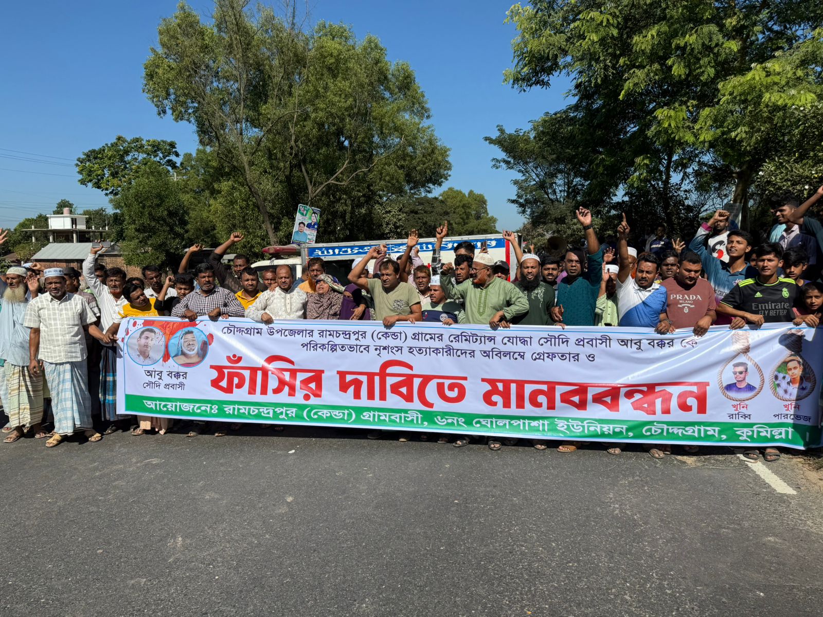 হত্যাকারীদের গ্রেফতারের দাবিতে লাশ নিয়ে মহাসড়ক অবরোধ