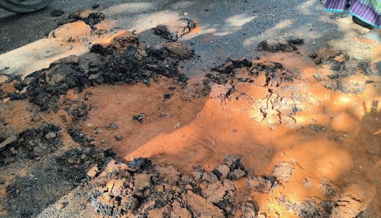হাত দিয়ে গ্রামবাসী তুলে ফেলেন সড়কের কার্পেটিং