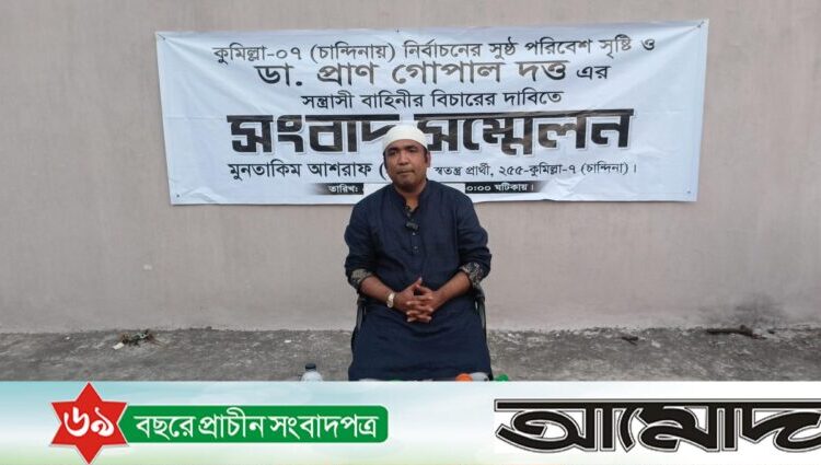 মুনতাকিম আশরাফ টিটু বলেন, নির্বাচনের তফসিল ঘোষণা হওয়ার পর এই আসনের নৌকা প্রতীকের প্রার্থী ডা. প্রাণ গোপাল দত্তের নেতাকর্মীরা আমার আমার সমর্থকদের ওপর ও তাদের বাড়ি ঘরে ৪০ টি হামলার ঘটনা ঘটায়। এতে আমার ৭০জন কর্মী মারাত্মক আহত হয়। অথচ তারা উল্টো আমাদের বিরুদ্ধে থানায় বিভিন্ন মিথ্যা অভিযোগ দায়ের করে। তারা আমাদের ওপর যেদিন হামলা করে ওই দিন নিজেদের একটি কার্যালয়ে আগুন দেয়। তা দেখিয়ে উল্টে আমাদের ওপর মামলা দেয়। সর্বশেষ শুক্রবার রাতে থানায় দুটি মামলা করা হয়। এ দুটি মামলায় আমার প্রধান নির্বাচনী এজেন্ট কাজী ইয়াছিন আহম্মেদ অভিসহ ৪০ এজেন্টকে আসামি করা হয়। মামলায় আরো ৩০ জনকে অজ্ঞাতনামা আসামি করা হয়। এছাড়া আমাদের নেতাকর্মীদের বাড়িতে পুলিশ দিয়ে হয়রানি করা হচ্ছে। আমার নির্বাচনী কার্যালয়সহ আমার সমর্থিত বিভিন্ন ইউপি চেয়ারম্যানের বাড়িতে তল্লাশি চালানো হচ্ছে। তাদের এলাকা ছেড়ে যেতে নির্দেশ দেওয়া হচ্ছে। এসব বিষয়ে নির্বাচন কমিশনসহ বিভিন্ন দপ্তরে অভিযোগ প্রায় ৩০টি জমা দিয়েও কোন প্রতিকার পাইনি। নির্বাচন সুষ্ঠু পরিবেশ ফিরিয়ে আনতে নির্বাচন কমিশনের জরুরি হস্তক্ষেপ কামনা করেন তিনি।