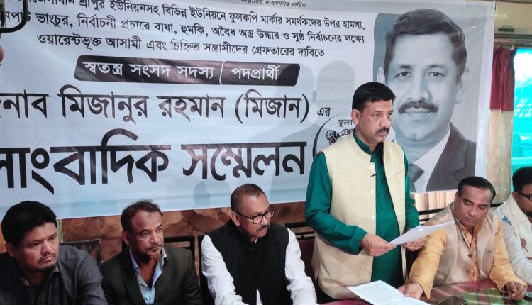 হামলার প্রতিবাদ ও অস্ত্র উদ্ধারের দাবি স্বতন্ত্র প্রার্থী মিজানের